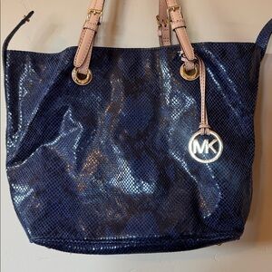 Blue and black snake print Michael Kors leather hand bag. In excellent condition.