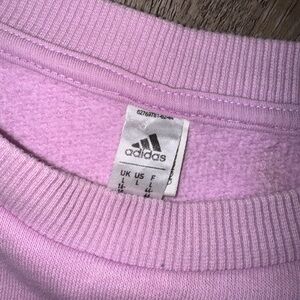 Pastel purple Adidas crewneck sweatshirt with white detailing.
