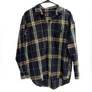MADEWELL Oversized Ex-Boyfriend Plaid Button Down Shirt Navy Green Medium
