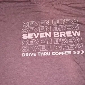 This Brand new without tags, Seven Brew coffee store, logo, mauve, short sleeve unisex t-shirt in size XL features a graphic print of the brand's logo, making it a stylish and unique addition to any wardrobe. it says seven Brew and the last line says drive-thru coffee Made of cotton and machine washable, this t-shirt is suitable for all seasons and can be worn with a crew neckline for a comfortable fit. The fun and quirky theme of Seven Brew and coffee adds a playful touch to the overall design, making it a versatile and standout piece for men who appreciate a blend of style and comfort in their clothing. We got it out of grand opening. it's just too big and I'll never be able to wear it. The picture may look a little off but it is just the shadow of the phone. when I took a picture. It comes from a smoke free and a pet-free home. I do offer discounts when you purchase more than one of my listings at a time and I do consider all offers!