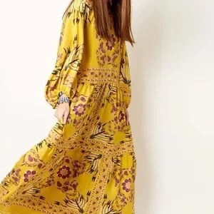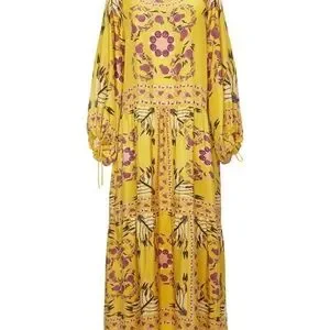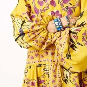 Manifest the holiday of your dreams in this most romantic of folky frocks. Its voluminous romantic shape - think puff sleeves, tiered skirt, uber roomy waist - never feels too heavy in our luxurious silk and we’ve added little details like ties at the sleeve and back. Prime for wafting around the Italian riviera, but equally good for a fancypants invite, this pull-on number comes in our heavenly hand-placed Melograno print and is 100% made in Italy (as always).