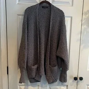 Cozy Charcoal Women's Open Front Cardigan with Pockets