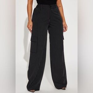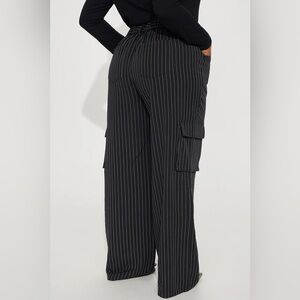 EUC Fashion Nova Nikki Cargo Trouser - Black/white pinstripe