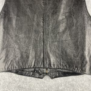 Vintage Express Vest Mens Medium Black Leather Zipper Pockets Biker Moto 90s Y2K