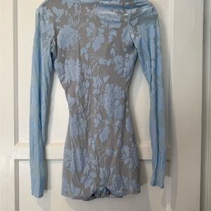 Elegant textured bodysuit in soft blue. Features a sleek design. Brand new with the tag attached .