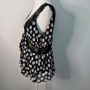 Robert Rodriguez Black and White Polka Dot Lace Top