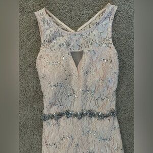 My Michelle Blush Pink Lace Sequin Gown – Size 5