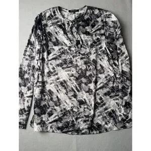 Lafayette 148 Grey printed front tie silk blouse, Size Medium