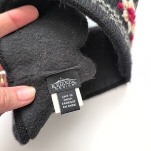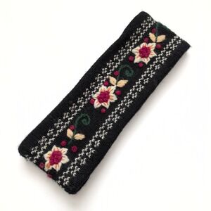 Icelandic Design Womens Black Knit Headband Floral Embroidered Wool OS Fair Isle