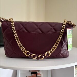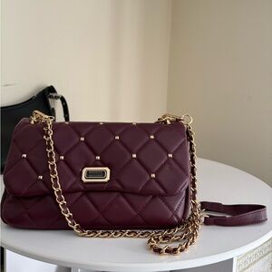 Badgley Mischka Burgundy Quilted Shoulder Bag with detachable chain strap