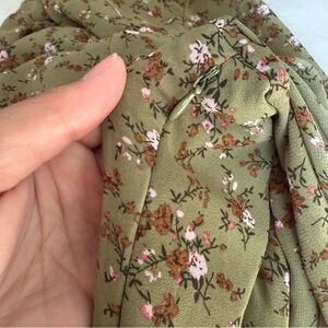 Nasty Gal Olive Floral Long Sleeve Midi Dress w/ Slits Size 6 Cottagecore Boho