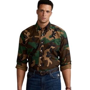 Ralph Lauren Men's Green and Brown Camouflage Shirt size medium