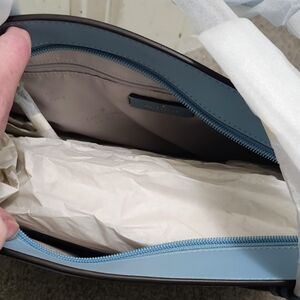 Stylish beautiful light blue leather tote from Kate SpadeNewYork. Features sturdy straps, spacious interior with zip pocket and 2 slip pockets, and full zip top enclosure to keep your belongings secure. Brand new with tags and will come in original plastic bag from retail store.