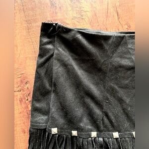 Stylish black fringe skirt perfect for any occasion. Add a touch of flair to your wardrobe.