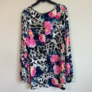 Sew In Love Top Leopard Animal Print Floral Long Sleeve V-Neck Blouse Plus Size