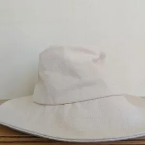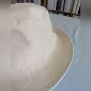 Like new 100 percent cotton sun hat from Wyeth. Wide brim, packable, bucket hat style. Natural cream canvas color. Adjustable.