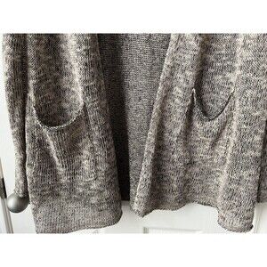 Eileen Fisher Gray Open Long Knit Cardigan Organic Linen Cotton Office Large