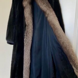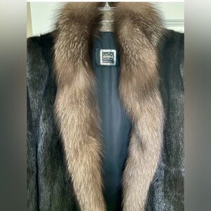 Rare Find* Saga Furs Black Mink and Tan Fox Fur tuxedo collar coat