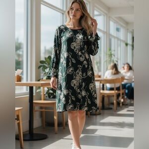Chic floral design in green and cream. Office to evening. Fully lined. New with tags