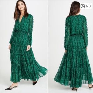 MISA Los Angeles Hadeya Tiered Maxi Dress Emerald size large