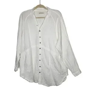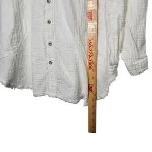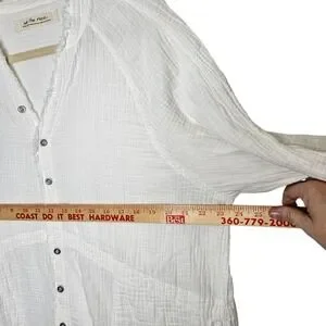 We The Free People Tunic Top XS White Long Sleeve Button Frayed Gauzy Oversized