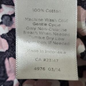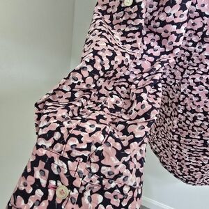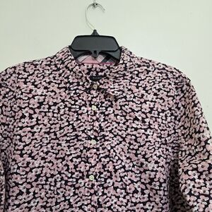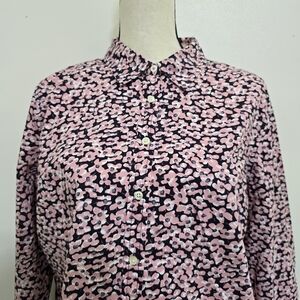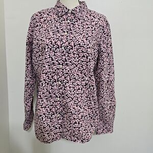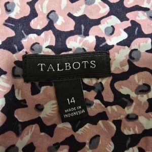 TALBOTS size 14 Floral Roll Tab Sleeve Button Up Casual Cotton Shirt Pink Navy