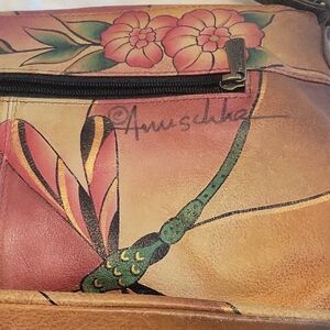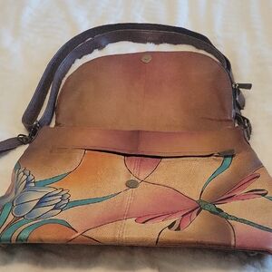 Anuschka Hand-Painted Leather Shoulder Bag - Floral Design 16" Wide 11 Long.