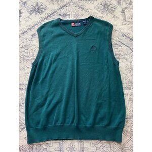 Chaps Green Cotton Sleeveless V-Neck Sweater Vest Large Casual Mens 100% Cotton