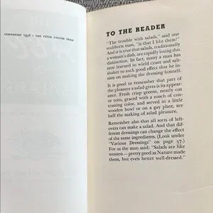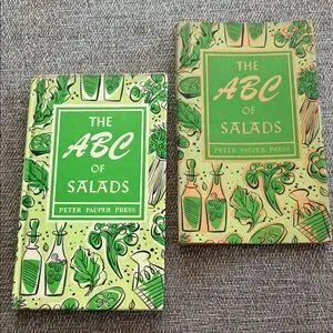 Mid Century cookbook from Peter Pauper Press, 1958. “The ABC of Salads", illustrated by Ruth McCrea. Fabulous typography & design. The 3 color prints are charming & the cookery advice is classic. This was part of a series published in the 60’s. I have 5 listed and will bundle if you want more than one. 61 pgs. 4.25” x 7.5”. Hardcover book is in good vintage condition (the jacket has light wear.) No writing, torn or missing pages.