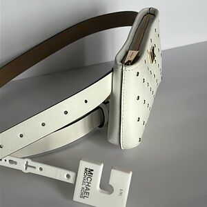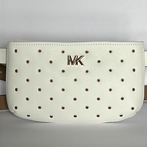 🆕 MICHAEL KORS Gold Studded Genuine Leather Belt Bag White NWT Size Large / XL