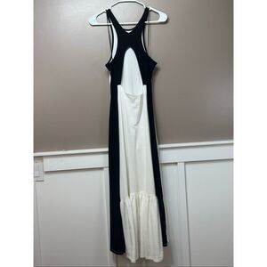 NWOT Daily Practice Anthropologie Colorblock Racer Back Midi Black & White Dress Women's