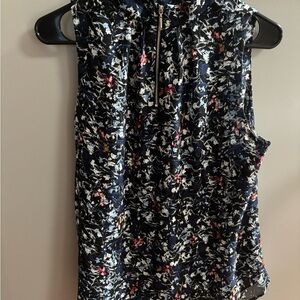 This elegant sleeveless blouse from White House Black Market features a sophisticated mandarin collar and a striking black and blue color palette. The lightweight fabric drapes beautifully, making it a versatile addition to any wardrobe. Perfect for both casual and formal occasions, this top is a must-have for a chic and polished look.
