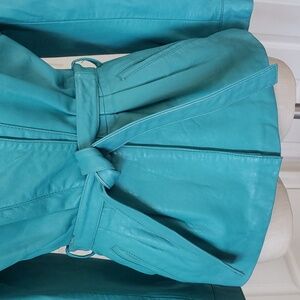 Vintage 80's Turquoise Leather Belted Jacket SIZE SMALL / EU 44