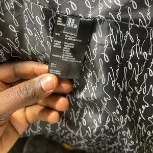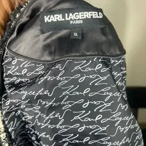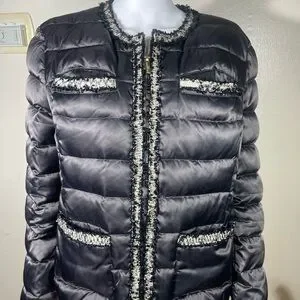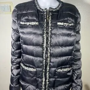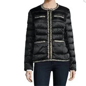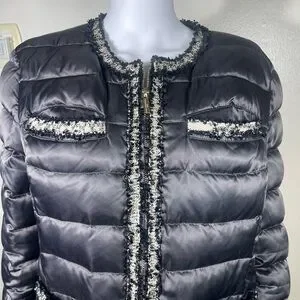 Karl Lagerfeld Black & Gold Tweed Detail Front Zip Puffer Jacket size XL