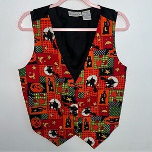 Cute vintage Halloween themed button down vest with tie in the back by Basic Editions