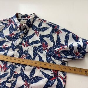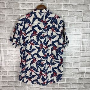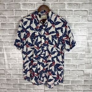 Denim & Supply Ralph Lauren White Blue Tropical Leaf Casual Button Shirt LARGE