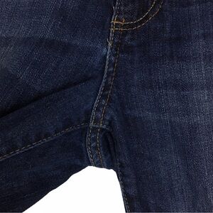Jeans are in good pre-owned condition. Soft, stretchy denim. Front zipper fly with double button closure. Distressing all over from washing & wear. Please see photos for details.