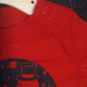 This vibrant red bodysuit from Garanimals features a striking black graphic design on the front, crafted from a soft cotton blend for comfort. The classic design includes convenient snaps at the bottom for easy changes, making it a practical and stylish choice for any occasion.