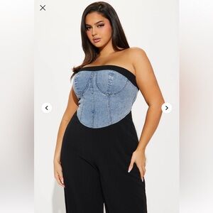 NWT Fashion Nova Dixie Denim Jumpsuit Size 1X