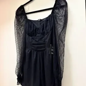 NEW with tags flirty fashionista black mesh bustier long sleeve romper