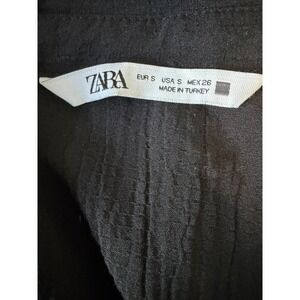 The Zara Women's Black Collared V-Neck Longsleeved Wrap Dress in size Small is a stylish and versatile choice for various occasions. This solid black dress features a flattering V-neckline and long sleeves, making it suitable for parties, casual wear, or business events. With a faux wrap design and short length, this dress offers a touch of sophistication and can be easily styled for fall or spring. Made by the popular brand Zara, this dress is a timeless and chic addition to any woman's wardrobe.