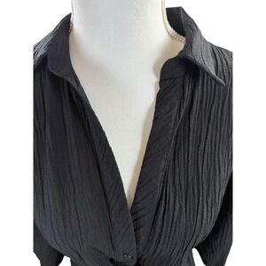 Zara Women's Collared V-Neck Longsleeved Wrap Dress Black Small