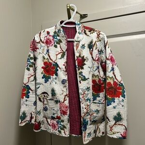 This elegant reversible floral quilted jacket is perfect for adding a touch of style to any outfit. Featuring a vibrant mix of colors, it offers both comfort and fashion.