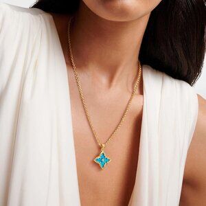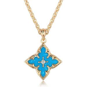 Material: 14K gold plated over brass, Nickle-free, leads-free and designed with low allergenicity, hypoallergenic necklace jewelry. Delicated daitny clover pendant is made from turquoise. Each charm is carefully handpicked for its exceptional quality. Due to the unique texture of the irregular patterns, the surface may not be perfectly same patterns