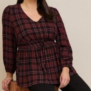 Torrid Babydoll Crinkle Flannel Gauze Smocked Tie Waist Black/Red SZ 4 (26)