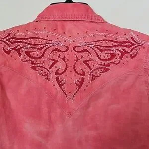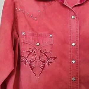 Wrangler Women's Coral Embroidered Button-Down Shirt. Size Meduim.