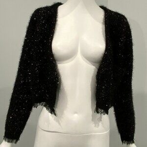 Black Fuzzy Knit Sweater Sparkle V Neck Cropped