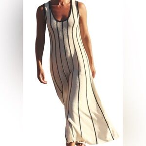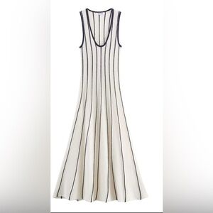 ZARA NAVY BLUE AND CREAM STRIPED TANK DRESS SIZE L