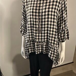 Karen Kane Gingham 3/4 Sleeve Ruffle Blouse XL in EUC