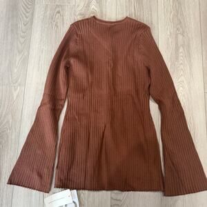 Commense Old Money Minimalist Golden Button Chocolate Brown Split Knit Top M